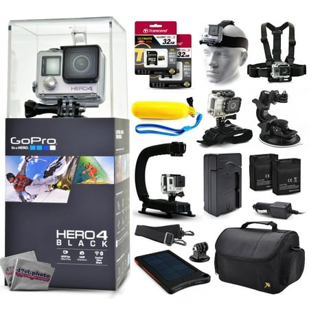 GoPro Hero 4 HERO4 Black CHDHX-401 with Two 32GB Ultra Memory + Solar Charger + Headstrap + Chest Harness + Floaty Bobber + Suction Cup + Opteka X-Grip + Large Padded Case + Two Batteries + More