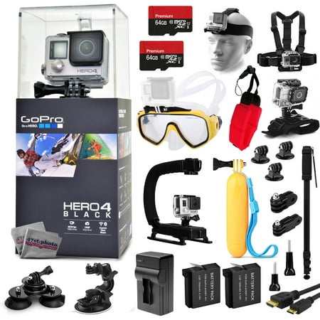 Related Product GoPro Hero 4 HERO4 Black Edition CHDHX-401 Kit with 128GB Memory + Diving Mask + X-Grip + Floating HandGrip + Head, Chest and Wrist Mount + Monopod + Battery + Charger + Strap + Tripod Adapter + HDMI