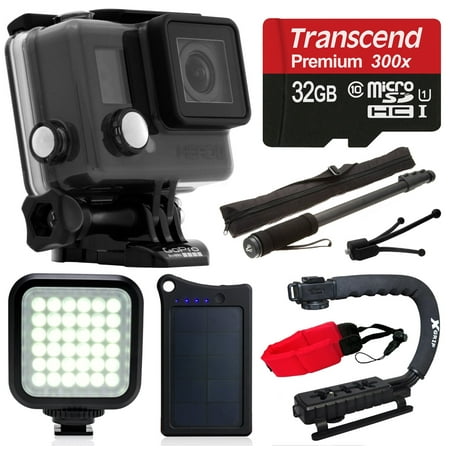 GoPro HERO+ Camera Camcorder (CHDHC-101) with Action Accessories Bundle includes 32GB Card + Selfie Stick Monopod + Opteka X-Grip Handle + LED Video Light + 13200mAh Solar Charger + More