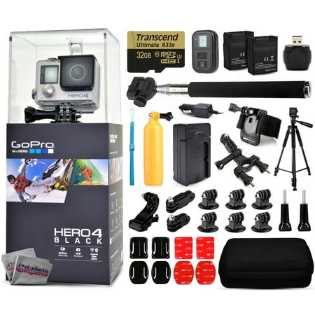 In the Box:- GoPro HERO4 Black- Rechargeable Battery for HERO4- Standard Housing- Skeleton Backdoor- Curved Adhesive Mount- Flat Adhesive Mount- Quick Release Buckle- 3-Way Pivot Arm- USB Cable47th Street Photo Accessories:- 32GB Transcend Class 10 microSD Card (633x) with Adapter- Wireless WiFi Remote- Replacement Li-ion Battery Pack for GoPro (2) - Micro SD Card Reader\/Writer- Selfie Stick- Floating Float Hand Grip Bobber- Replacement AC\/DC Charger with Car Plug- Seatpost Roll Bar Mount- Wrist Strap- Pro Series 60 Inch Tripod Full Size Tripod- Helmet Front Mount Kit (2) -Tripod Adapter (6) - Premium Compact Case for GoPro