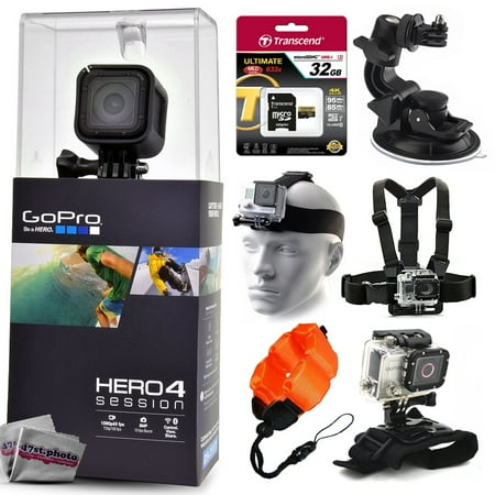 Related Product GoPro Hero 4 HERO4 Session CHDHS-101 with 32GB Ultra Memory + Suction Cup Mount + Headstrap + Chest Harness + Hand Wrist Glove + Floaty Strap