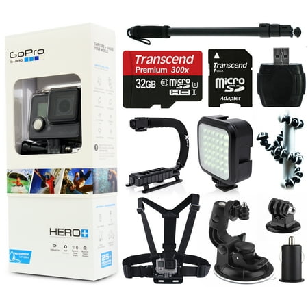 GoPro HERO+ Camera Camcorder (CHDHC-101) with 32GB MicroSD Card + Selfie Stick Monopod + Opteka X-Grip Action Stabilizer + LED Video Light + Chest Strap + Car Dash Mount + Car Charger & More