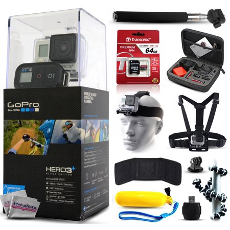 If You search gopro then GoPro HERO3+ Hero 3+ Plus Black Edition Camera CHDHX-302 + 64GB Ultra Memory + Premium Case + Head Strap + Selfie Stick + Chest Harness + Flexible Tripod + Floaty Bobber + MicroSD Card Reader + More is best choice, Buy it now for Price is 439.99
