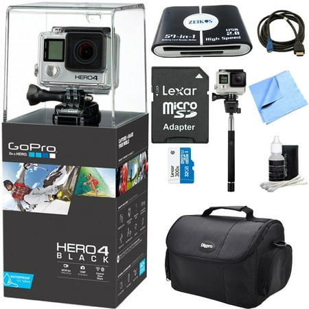 Related Product HERO 4 Black - 4K Action Camera Ultimate Kit. Includes GoPro Hero 4 Black, 32GB microSDHC UHS-I 300x Memory Card w\/ Adapter, Compact Deluxe Gadget Bag, HDMI to Micro-HDMI Cable, 57-in-1 USB Card Read
