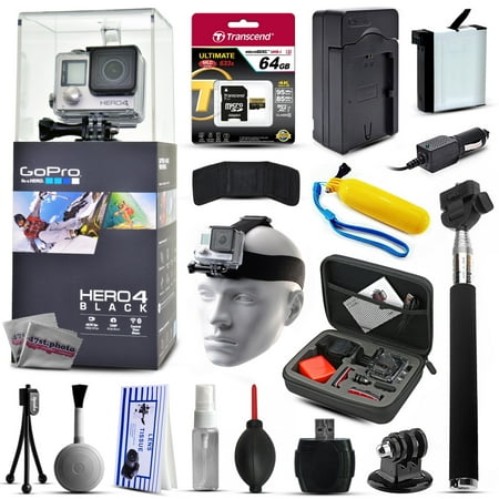 Related Product GoPro Hero 4 HERO4 Black CHDHX-401 with 64GB Ultra Memory + Premium Case + Extra Battery + Travel Charger + Selfie Stick + Head Strap + Floaty Bobber + MicroSD Card Reader + Cleaning Kit + More