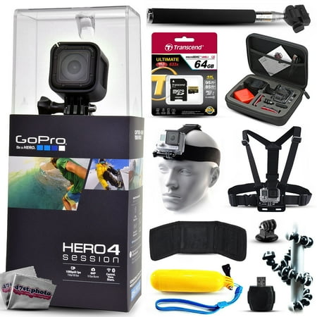 Related Product GoPro Hero 4 HERO4 Session CHDHS-101 with 64GB Ultra Memory + Premium Case + Head Strap + Selfie Stick + Chest Harness + Flexible Tripod + Floaty Bobber + MicroSD Card Reader + More