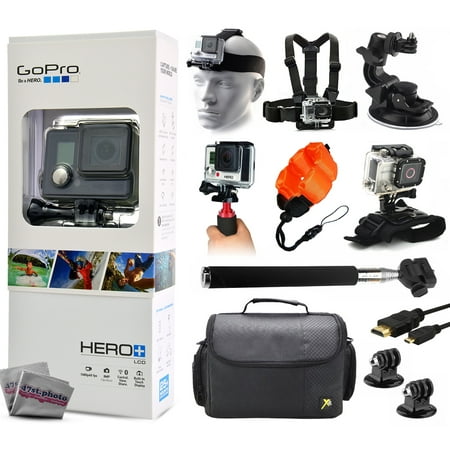 GoPro HERO+ Camera Camcorder (CHDHC-101) with Starter Accessories Package includes Hand Glove Strap + Head Strap + Travel Case + Floating Bobber + Home\/Travel Charger + Dust Cleaning Kit + More