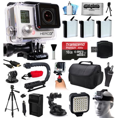 Related Product GoPro HERO3+ Hero 3+ Black Plus Edition Action Camera Camcorder with Ultimate Accessory Bundle includes 16GB MicroSD + 3x Batteries + Large Case + Stabilizer + Tripod + LED Video Light (CHDHX-302)