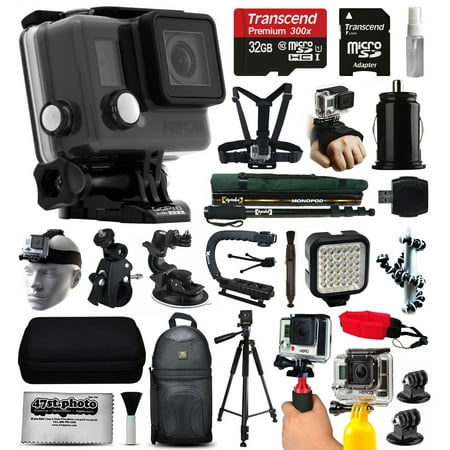 GoPro HERO+ LCD Camera Camcorder (CHDHB-101) + 32GB Card + Tripod + Backpack + Car\/Bike Mount + Selfie Stick + Chest\/Head Strap + Car\/Home Charger + Travel Case + Hand Glove + LED Light + More
